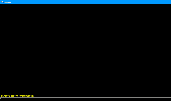 1) There are couple of ways to set the zoom type. One is to tap your “Z” key to cycle through the options, a confirmation will show in the bottom left corner that the zoom type has changed to “Manual Zoom”. The other method is to enter a command into the console. You do this by opening the console with the backtick key ( ` ) and then entering the camera_zoom_type manual command into the console, as below: